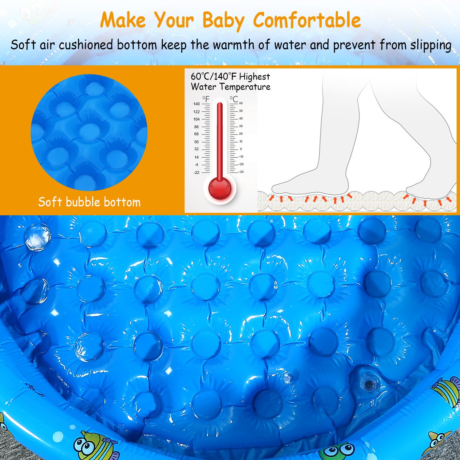 **HAPPY KIDS TOGETHER*:51x13' Inflatable size is recommended 3 kids to enjoy splashing pool party in the backyard. Anti-skid design of bottom and inner center cushion,ensure the safety and comfort of your baby. Very soft and safe for your baby,have a great bath time.