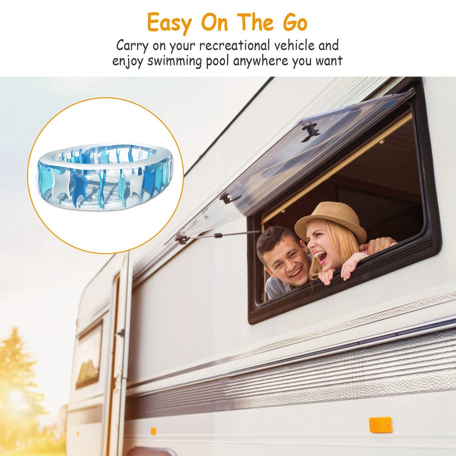 *INFLATE VALVES*:Designed with a valve in the bottom and multiple separate cells of swimming pool wall,can withstand extra weight while preventing air leakage. You can blow it up in 10 minutes with air pump(Not included).