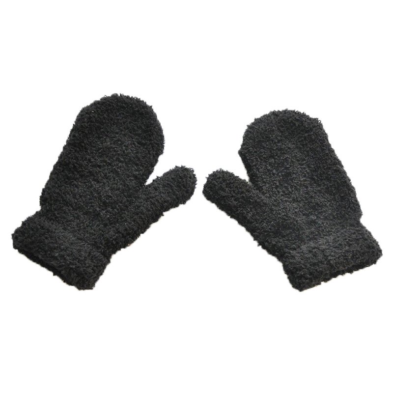 Black 1-4Y Warm Plush Thick Baby Gloves Plus Velvet Mittens Children Coral Fleece Full Finger Gloves