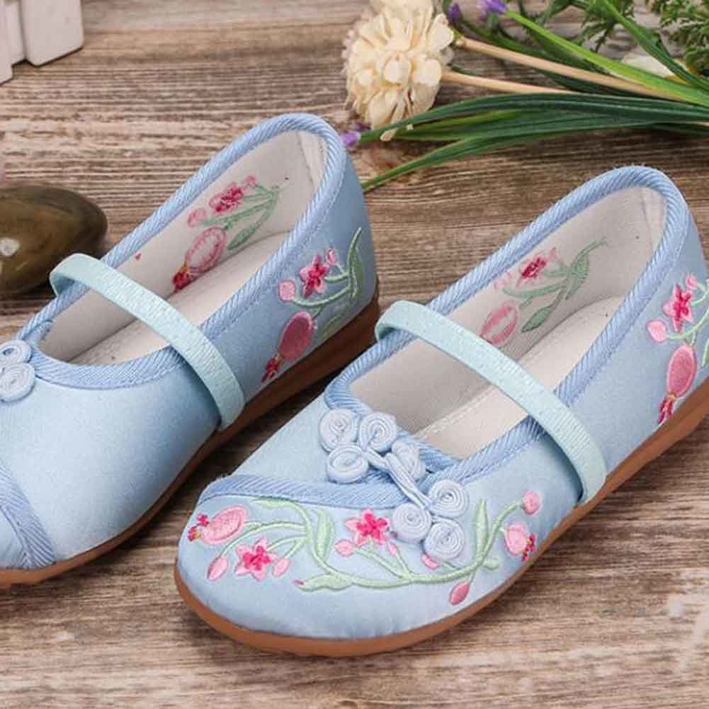 Blue - Chinese Traditional Embroidery Shoes Flower Loafers Girls Ballet Flats Blue - Chinese Traditional Embroidery Shoes Flower Loafers Girls Ballet Flats