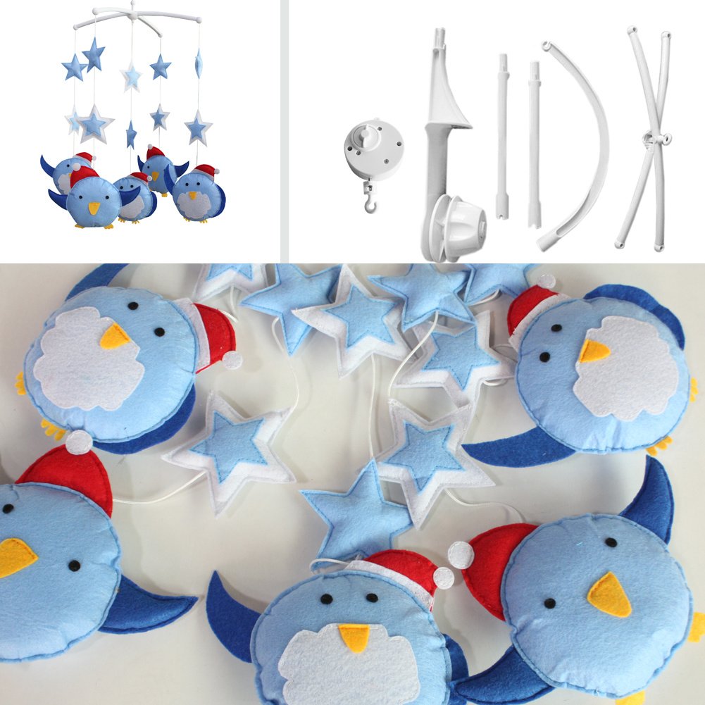 Blue Penguin with Red Hats Handmade Baby Crib Mobile Boys Girls Musical Mobile Infant Nursery Hanging Toy Blue Penguin with Red Hats Handmade Baby Crib Mobile Boys Girls Musical Mobile Infant Nursery Hanging Toy