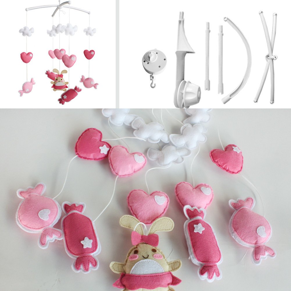 Infant Room Hanging Decor Baby Crib Mobile Nursery Decor Baby Mobile for Girls; Pink Heart Candy and Rabbit