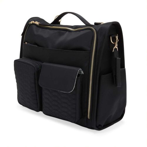 The MoDRN Convertible Backpack Diaper Bag is a stunning combination of style and functionality. This upscale diaper bag is the perfect baby accessory for the modern, chic parent. With a simple black design, the diaper bag offers you a comfortable, easy way to carry around your baby's necessities. The bag features straps that convert from backpack to crossbody or over the shoulder with ease and offers you a new way to style this striking bag. The three exterior pockets and main compartment pocket help keep your items secure and organized. The outside side pocket is great for storing extra bottles, snacks, toys, and more. With an exterior zippered pocket, you can use it to access your baby wipes quickly. Measuring 13 inches by 14.5 inches by six inches, this diaper bag is perfect for an on-the-go parent. Bring home the elegant MoDRN Convertible Backpack Diaper Bag today.