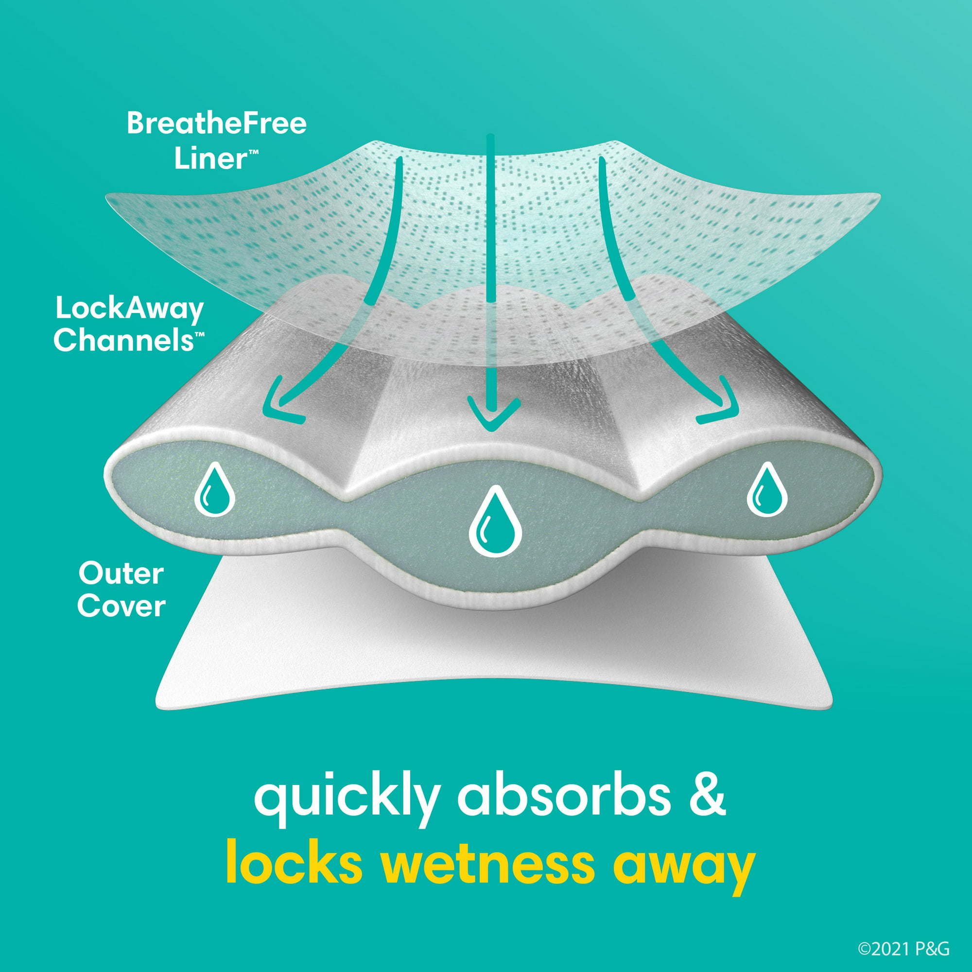 Ultra-soft absorbent layers help protect skin from wetness and irritation