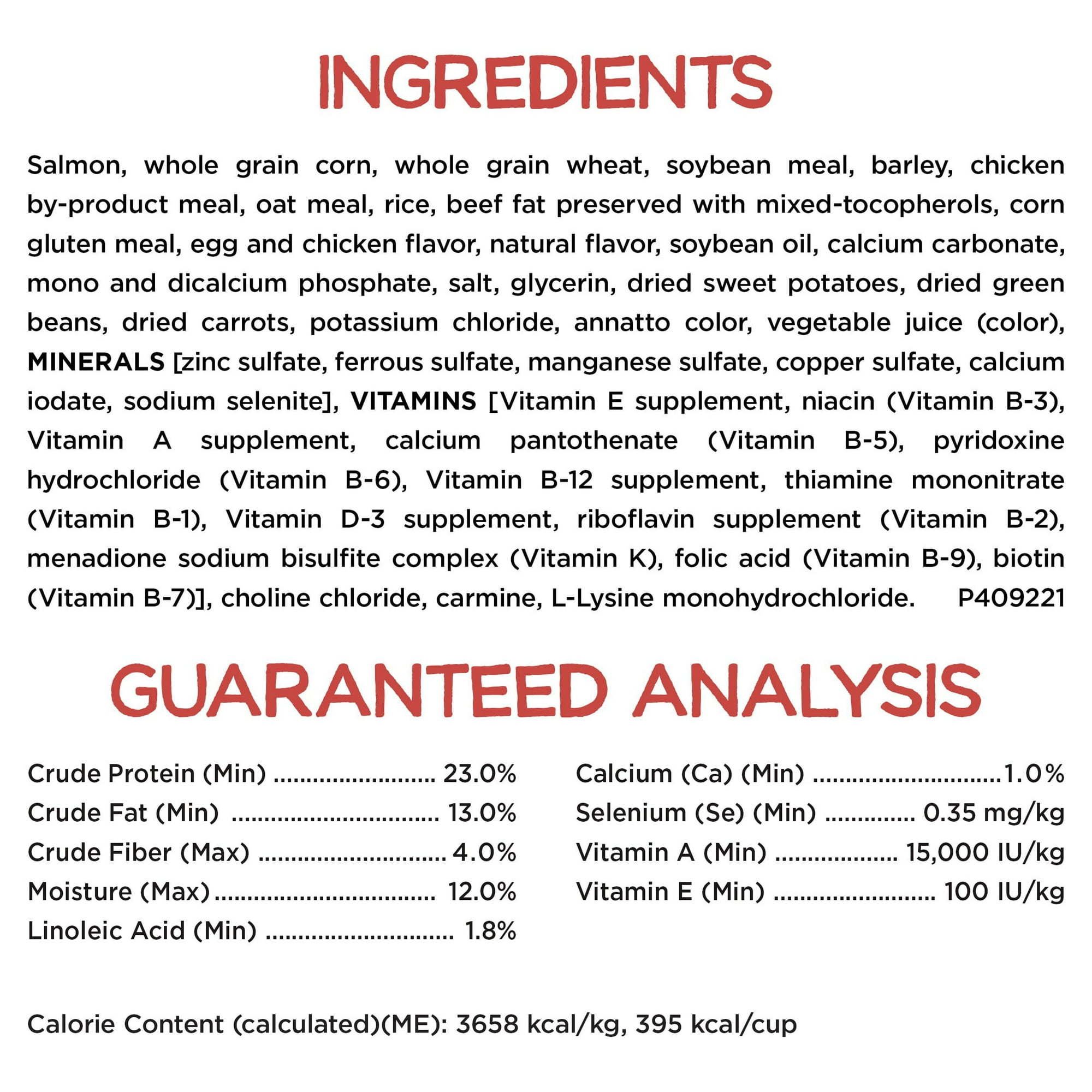 Purina dry dog food with Natural Salmon dog food provides 100 percent complete and balanced nutrition for adult dogs, including 23 essential vitamins and minerals to help support overall health.