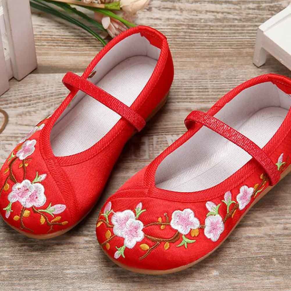Red - Chinese Traditional Embroidery Shoes Flower Shoes Girls Ballet Flats