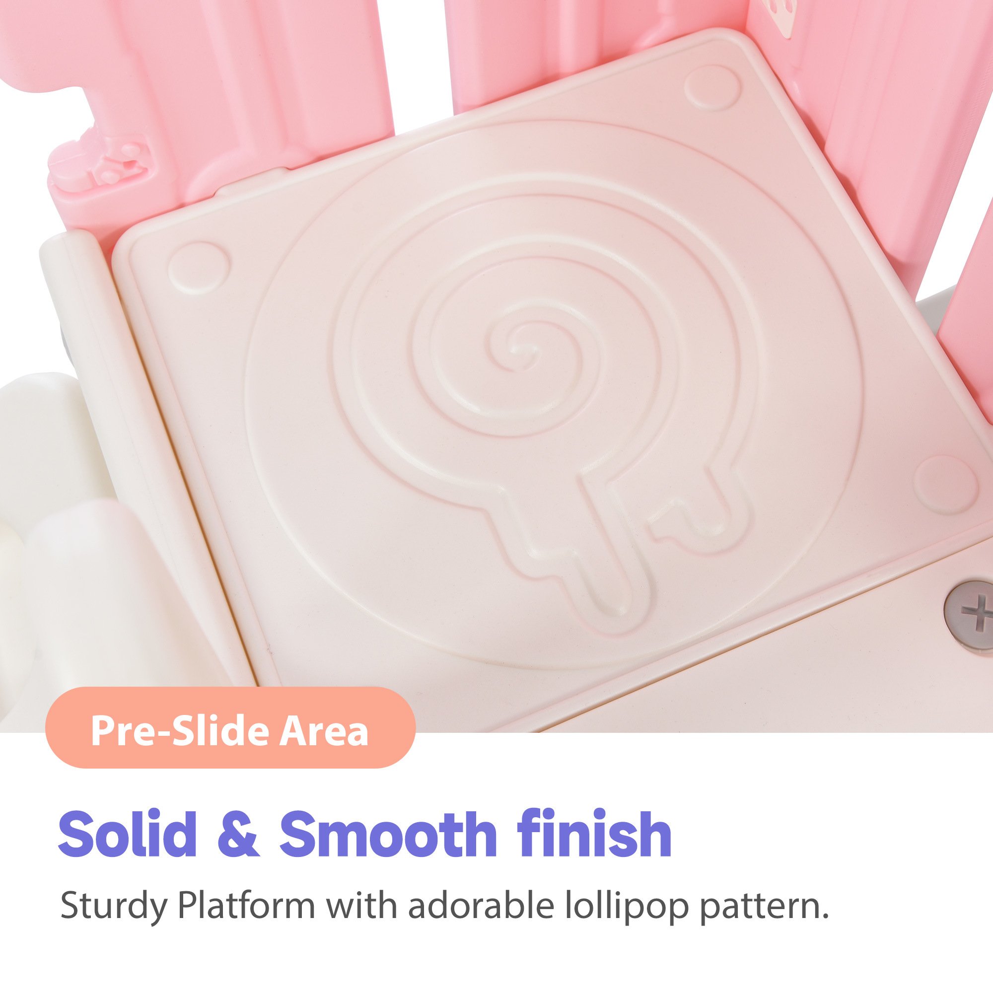 [Smooth & Safe] The stable and safe structure is full of design. The rock-climbing-shaped steps on the climbing ramp not only attract children's attention but also effectively prevent slippage. The smooth surface allows children to play freely and pleasantly. The expanded structure ensures the stability of the whole set of freestanding climbing slides. In addition; we have added small suction cups at the bottom to help it stay more stable on smooth ground and furtherly enhance the stability.